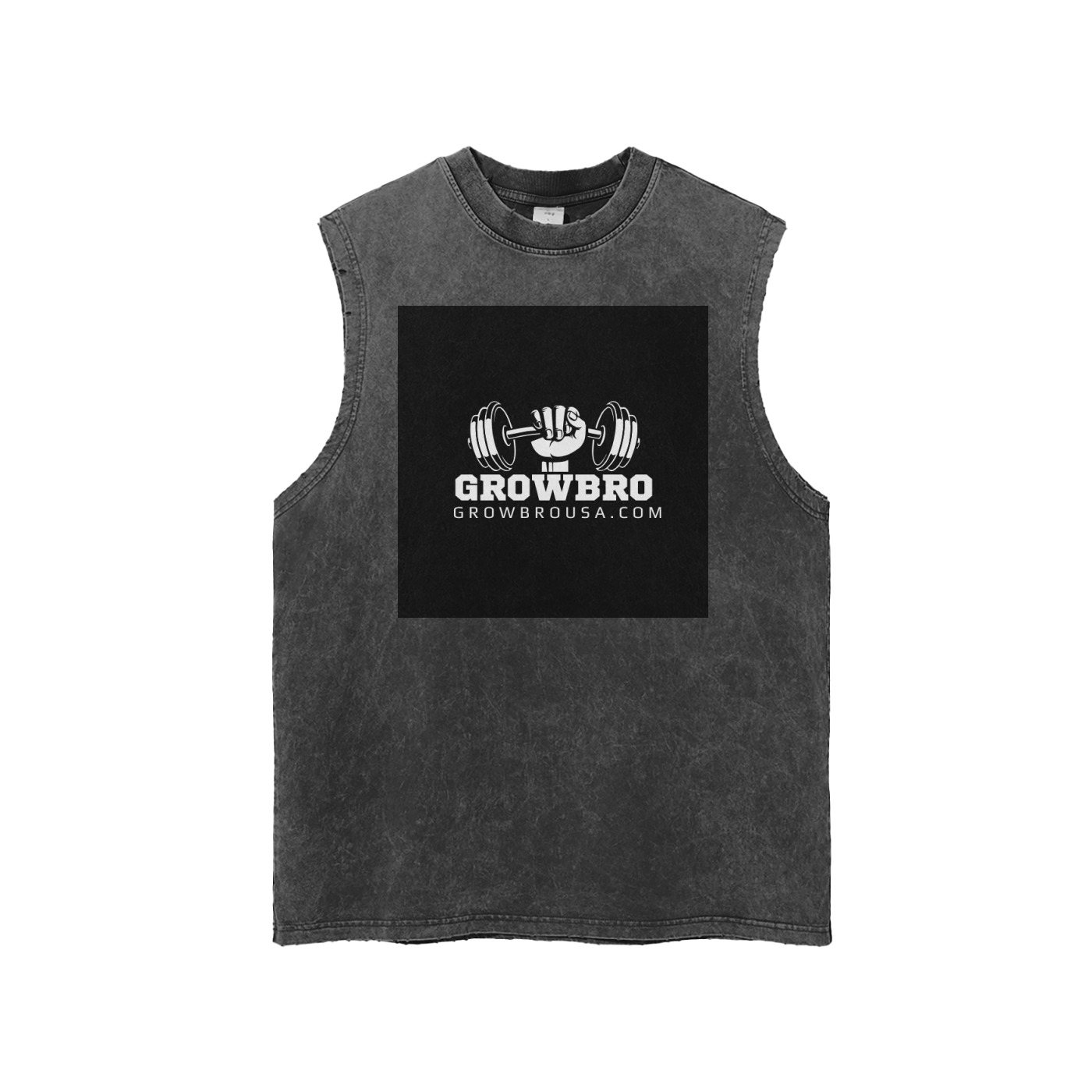 GrowBro Snow Washed Frayed Hem Tank Top Men's Gymwear 100% Cotton